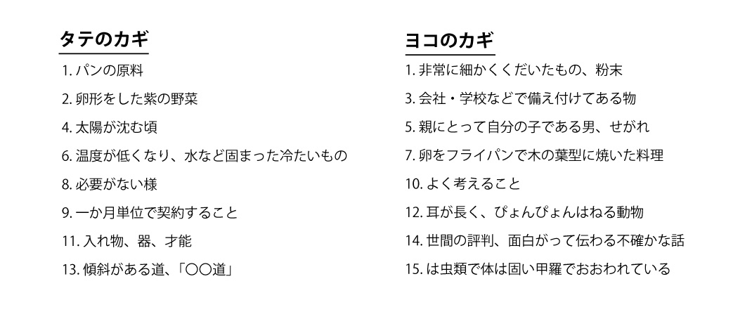 クロスワードパズル 王冠の問題 タテのカギ、ヨコのカギ