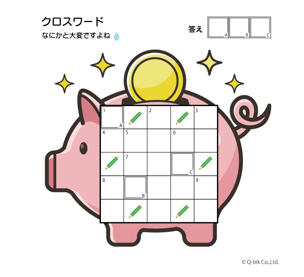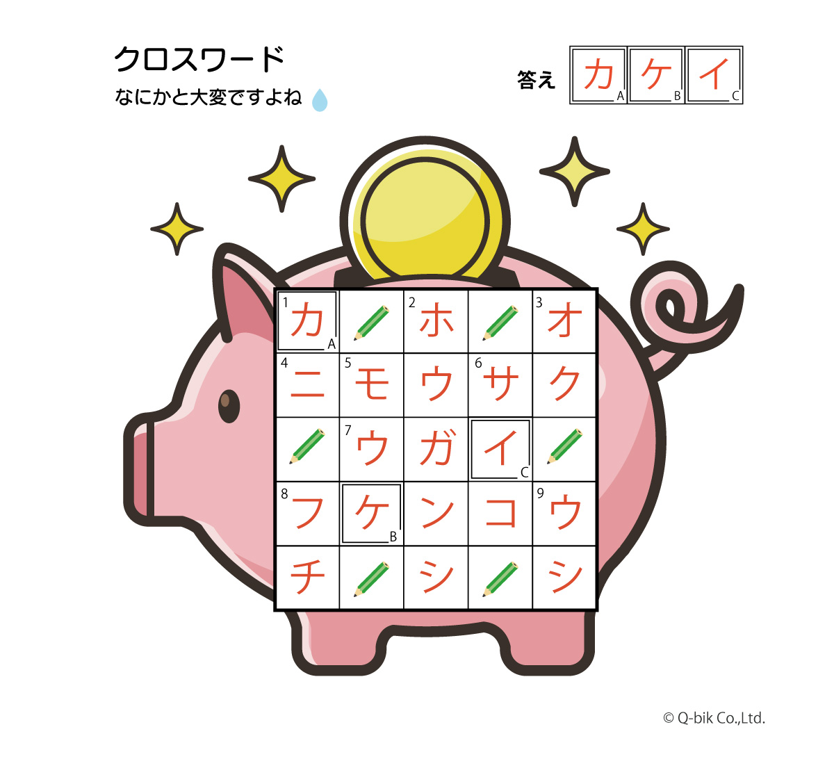 クロスワードパズルの答えは、カケイ(家計)でした。