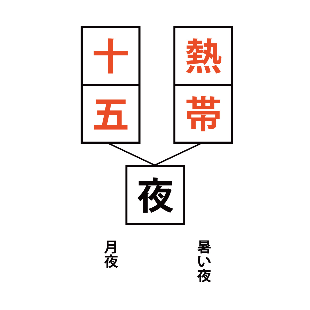 同じ漢字が上中下にあらかじめ配置された漢字を使って熟語を作る楽しい漢字パズルです。