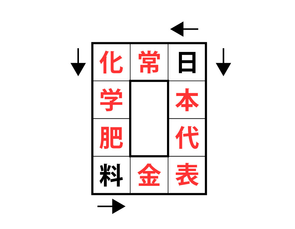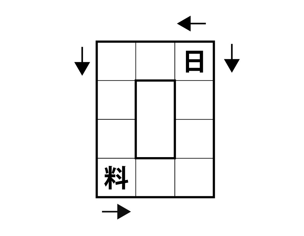 矢印の指示方向に沿って、マスに漢字を埋めていってください。