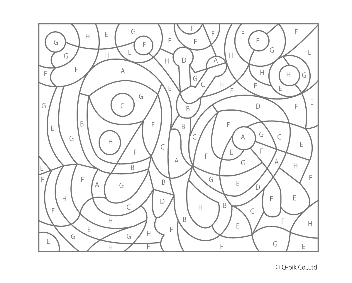 指定された数字やアルファベットを全て塗るとイラストが出てくる『ぬりえパズル』。