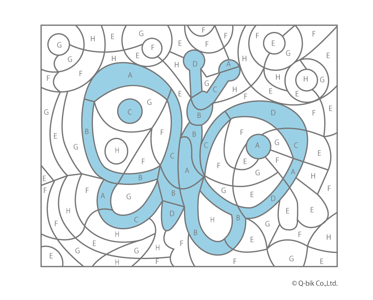 ぬりえパズルの答えは、蝶(ちょう)でした。
