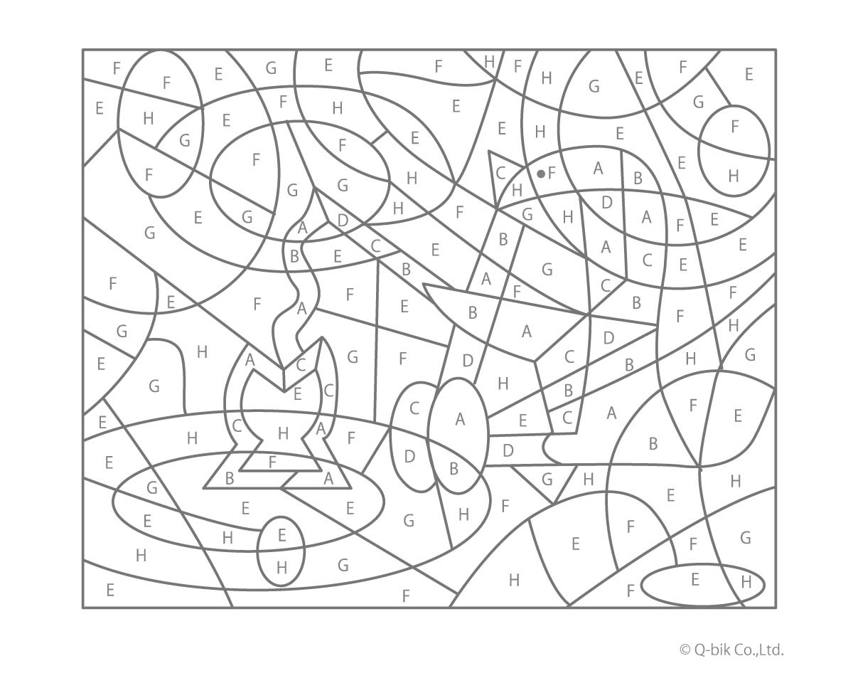 指定された数字やアルファベットを全て塗るとイラストが出てくる『ぬりえパズル』。