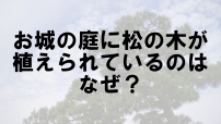 お城の庭に松の木が多く植えられているのはなぜ?【なぜ vol.60】