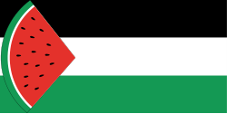 (1967年6月の第三次中東戦争後、イスラエルはパレスチナ旗の掲揚を禁止した。そこで、パレスチナ人は禁止された旗の代わりに、三角形の部分にスイカを当てはめた旗を用いるようになり、抵抗のシンボルとした)