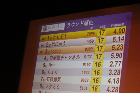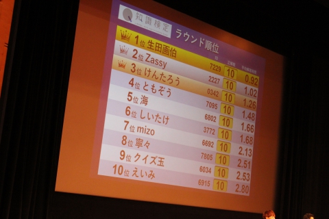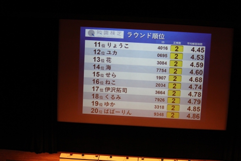 トップの生田画伯さんは、なんと平均解答時間1秒を切る快挙!しかも上位10名の方はいずれも3秒以内という接戦でした。