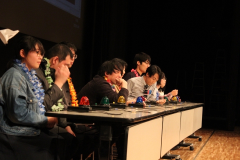 予選ラウンドを勝ち抜いた皆さんは、ステージ上の早押し機を前に少し緊張した面持ちです。しかし、早押し席には一つ空席が。