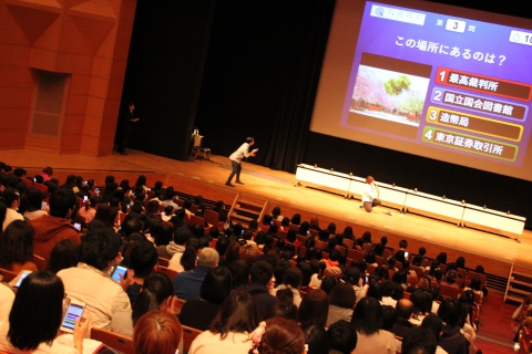 知識とスピードのガチンコ対決に伊沢さんも真剣な表情。会場の皆さんも勝負の行方を固唾を呑んで見守っています。