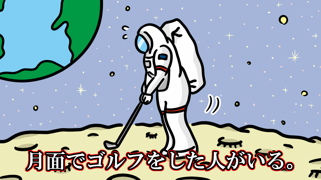 シェパード船長は密かに6番アイアンを持込み、9.5時間の貴重な船外活動中に、月という巨大なバンカー(砂地)でゴルフショットを行ったのです。