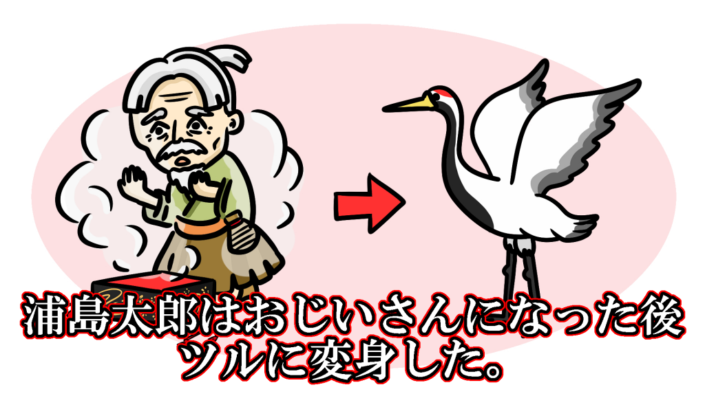 浦島太郎が最後、ツルになり飛び立ったということだろう。