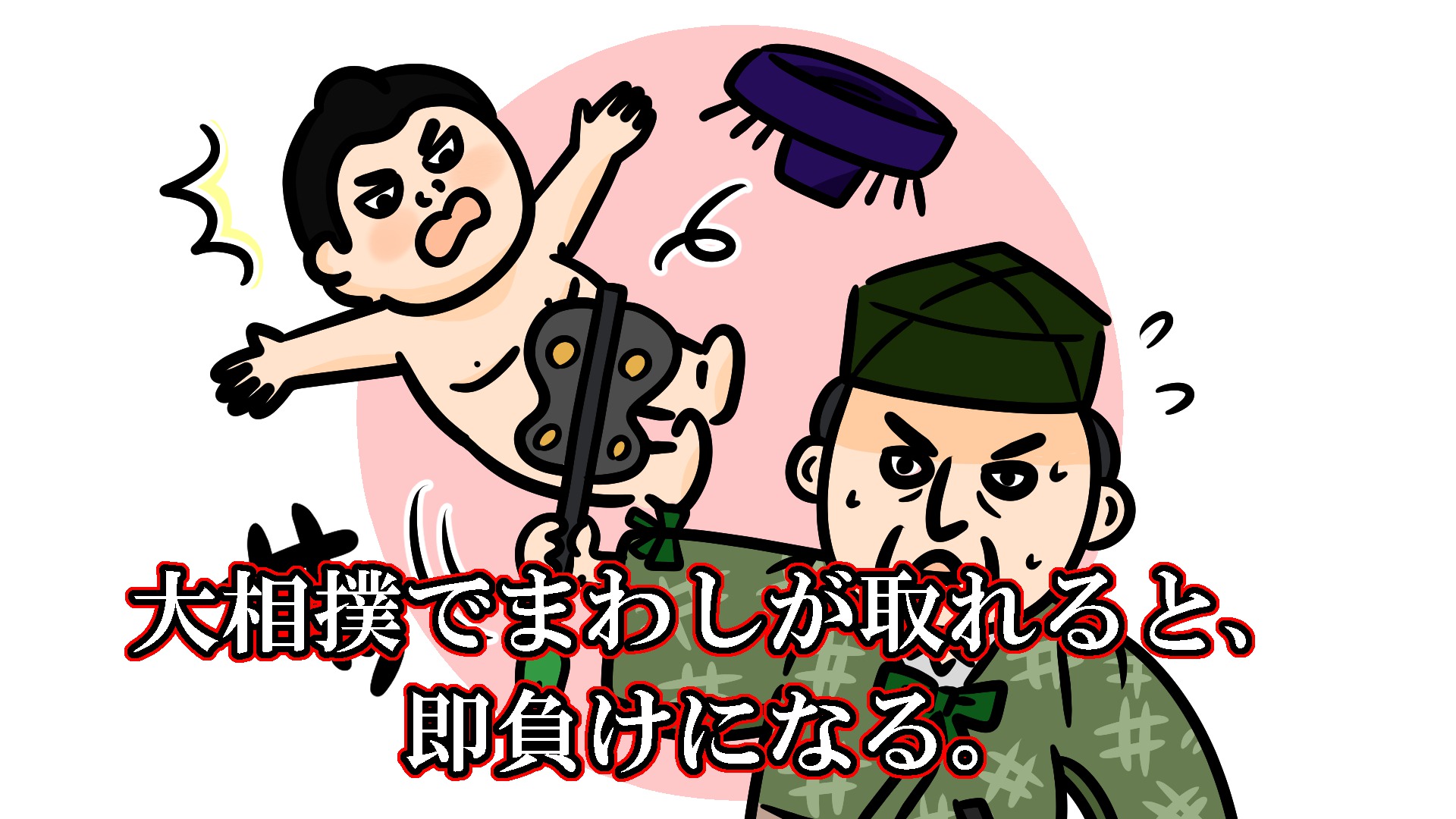 そう、力士のまわしが取れてしまうと一発で負けになってしまう、通称”不浄負け”があります。