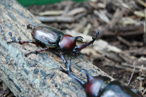 カブトムシとクワガタ。つかむ必要があるクワガタの方が基本的に弱い。