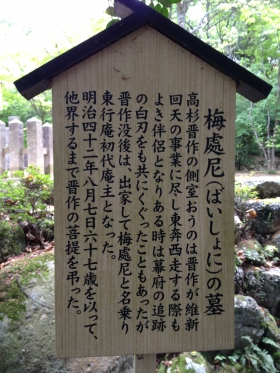 高杉の死後、おうのは尼さんになり、高杉のお墓を守り続けることに。おうののお墓は高杉のお墓のすぐ近くに建っていて、実際にそこに行ってみると、高杉のことを今でもおうのが支えているんだなぁと思えてなりません。