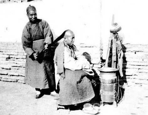 清朝では、満州民族の男性は頭の上に少し髪の毛を残してあとは全部剃り上げ、残した髪の毛を三つ編みにします。