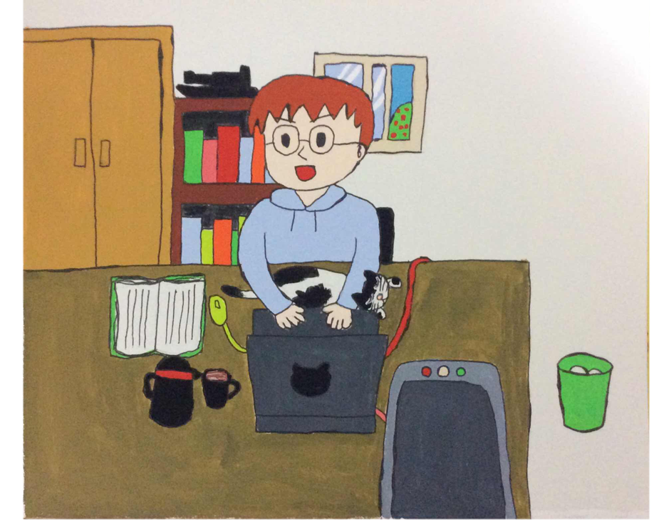 これは筆者によるイラストですが、そうした様々な「テレワークでの、ペットさんとのほのぼのエピソード」をイメージしたワンシーンです。特に猫とお暮らしの方におかれましては、このように「パソコン作業をしている机の上で、同時に猫と触れ合う」ことも多いと漏れ伝わりますが、この場面にヒヤリハット事例はどれくらいあるでしょう?