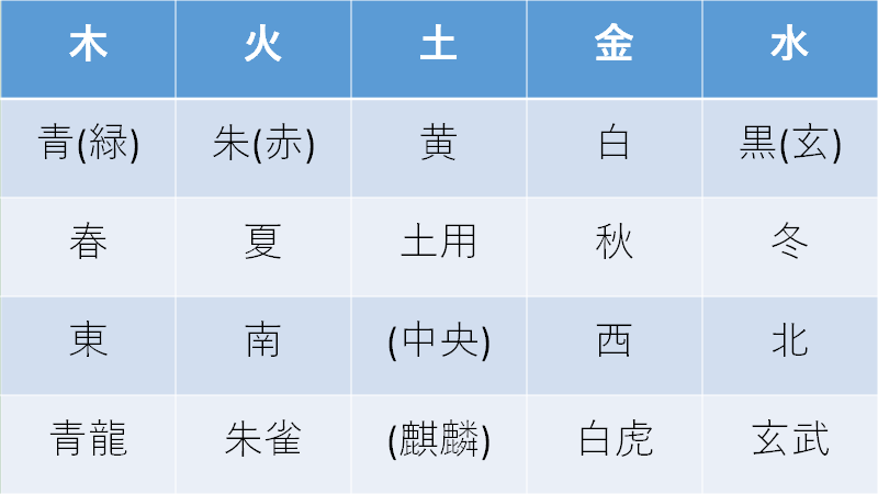 この五行の考え方をいろんな観点に当てはめて考えるようになります。